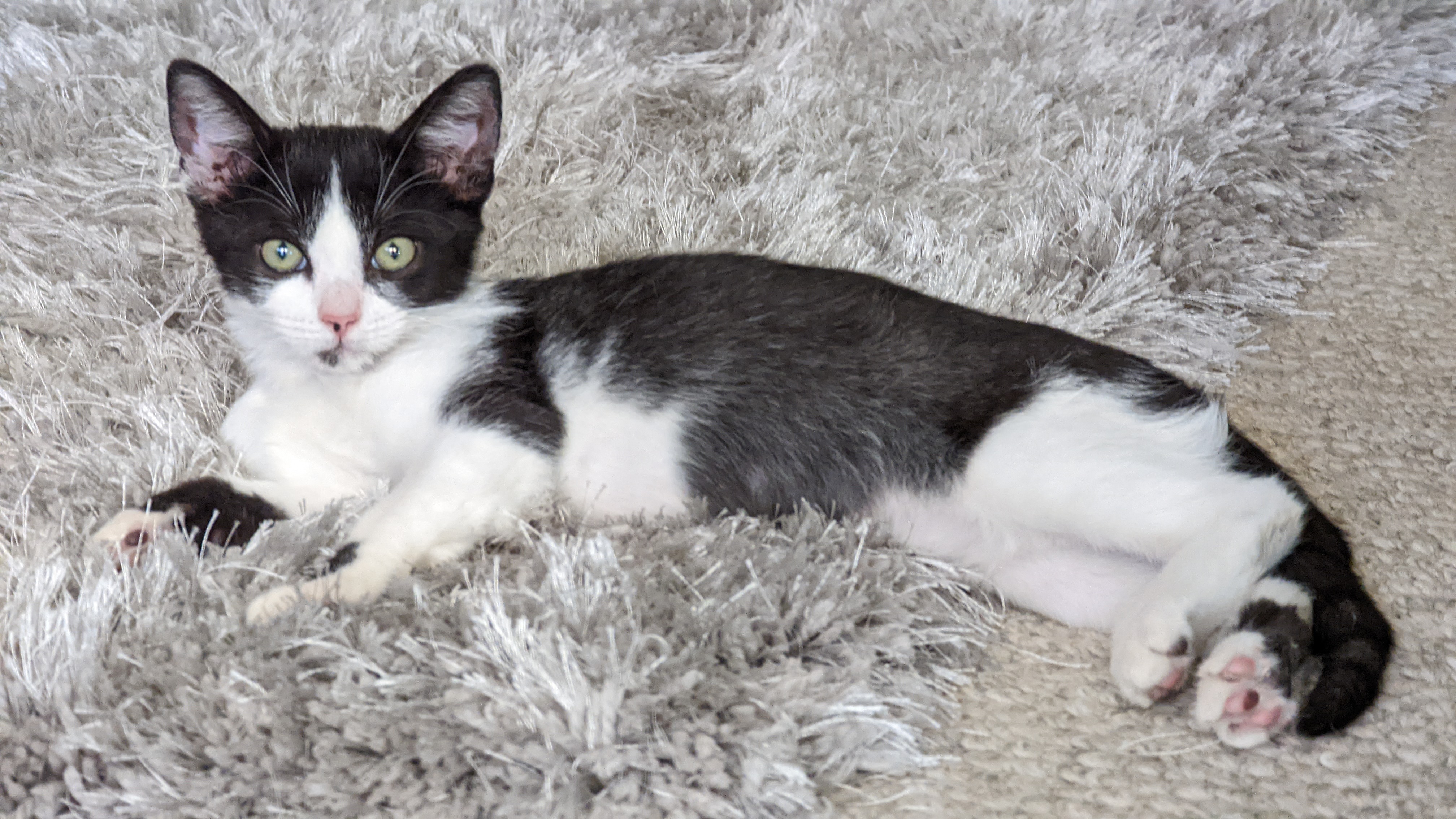 Mini was givn to us by a friend. When she was small, she looked like a miniature version of Cooper - so we named her Mini Cooper, or Minii for short.